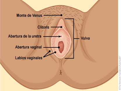 Es la zona ubicada entre las piernas de una mujer que cubre la abertura vaginal y otros órganos reproductores del interior del cuerpo.