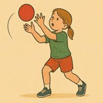 Imagen 1: Un niño soltando una pelota que rueda por el piso.